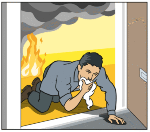 In presenza di fumo, camminare abbassati e proteggersi naso e bocca con un fazzoletto, possibilmente bagnato.